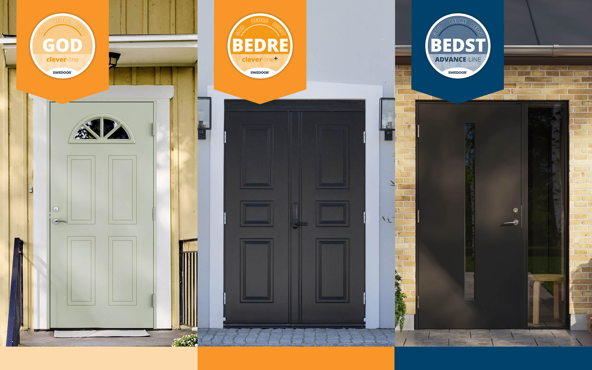 NYHED! Nyt sortiment af yderdøre Vi har opgraderet vores sortiment af yderdøre og gør det endnu nemmere at finde præcis den rette dør til ethvert hjem. Vælg mellem tre forskellige produktlinjer og find din favorit. Læs mere