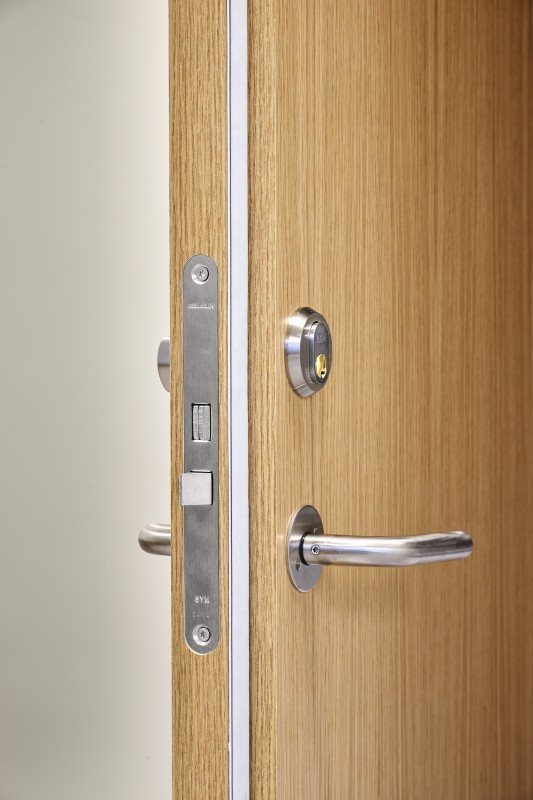 Til byggeriet på Strandlodsvej har Swedoor leveret hele 116 døre, som tæller alt fra udvendige ståldøre til indvendige BD30/35 egetræsdøre med 35 dB lydreduktion, som er placeret ved de mange mødelokaler i bygningen. Det særlige ved dørene er blandt andet højden, som er hele 240 cm: